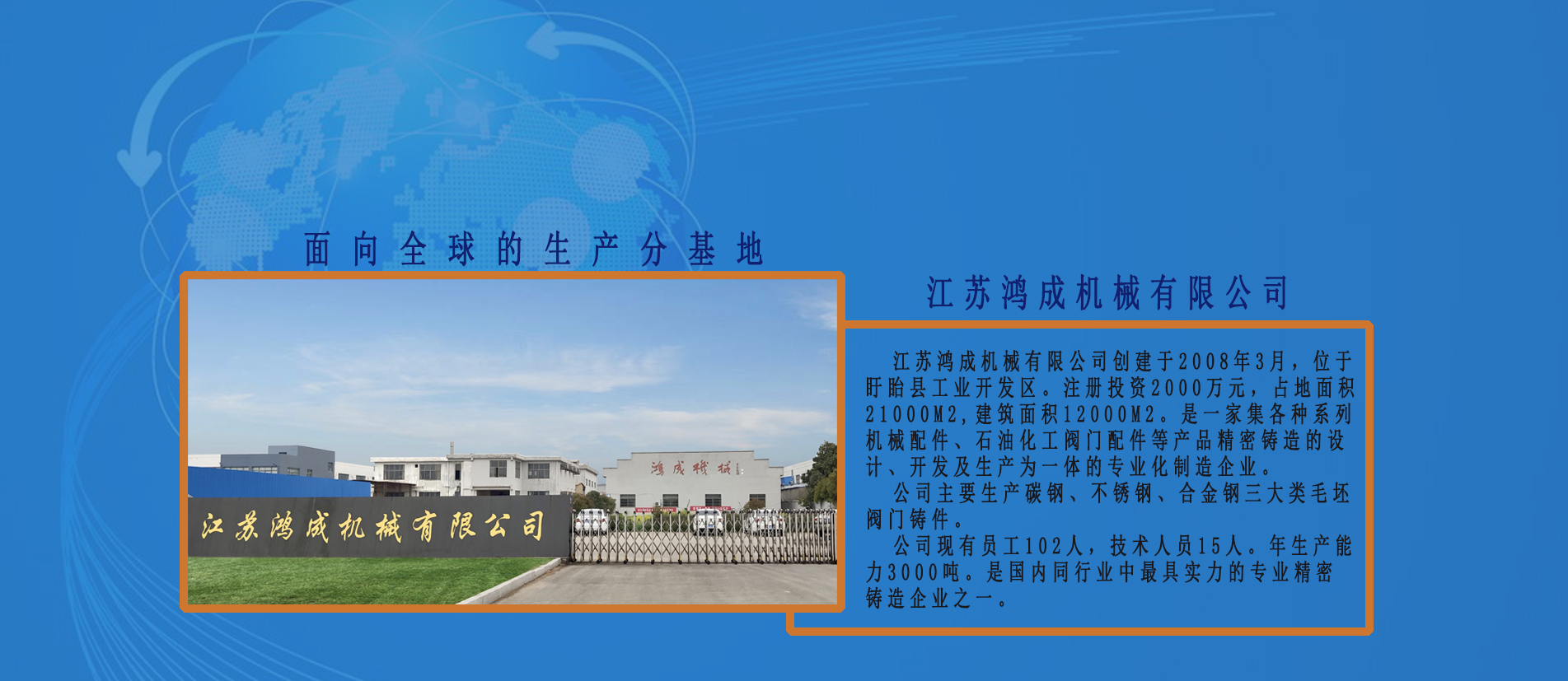 鄞州鴻成機(jī)械有限公司通過全體員工的團(tuán)結(jié)奮進(jìn)、頑強(qiáng)拼搏,發(fā)展迅速,公司占地面積7200平方米,已有員工180余人,擁有各類專業(yè)技術(shù)人員。專業(yè)生產(chǎn)各類普碳鋼、合金鋼、不銹鋼、精密鑄造產(chǎn)品廣泛用于冶金、礦山、石油、化工、鐵路、船舶、車輛等機(jī)械制造行業(yè)年產(chǎn)精鑄件2500噸以上。